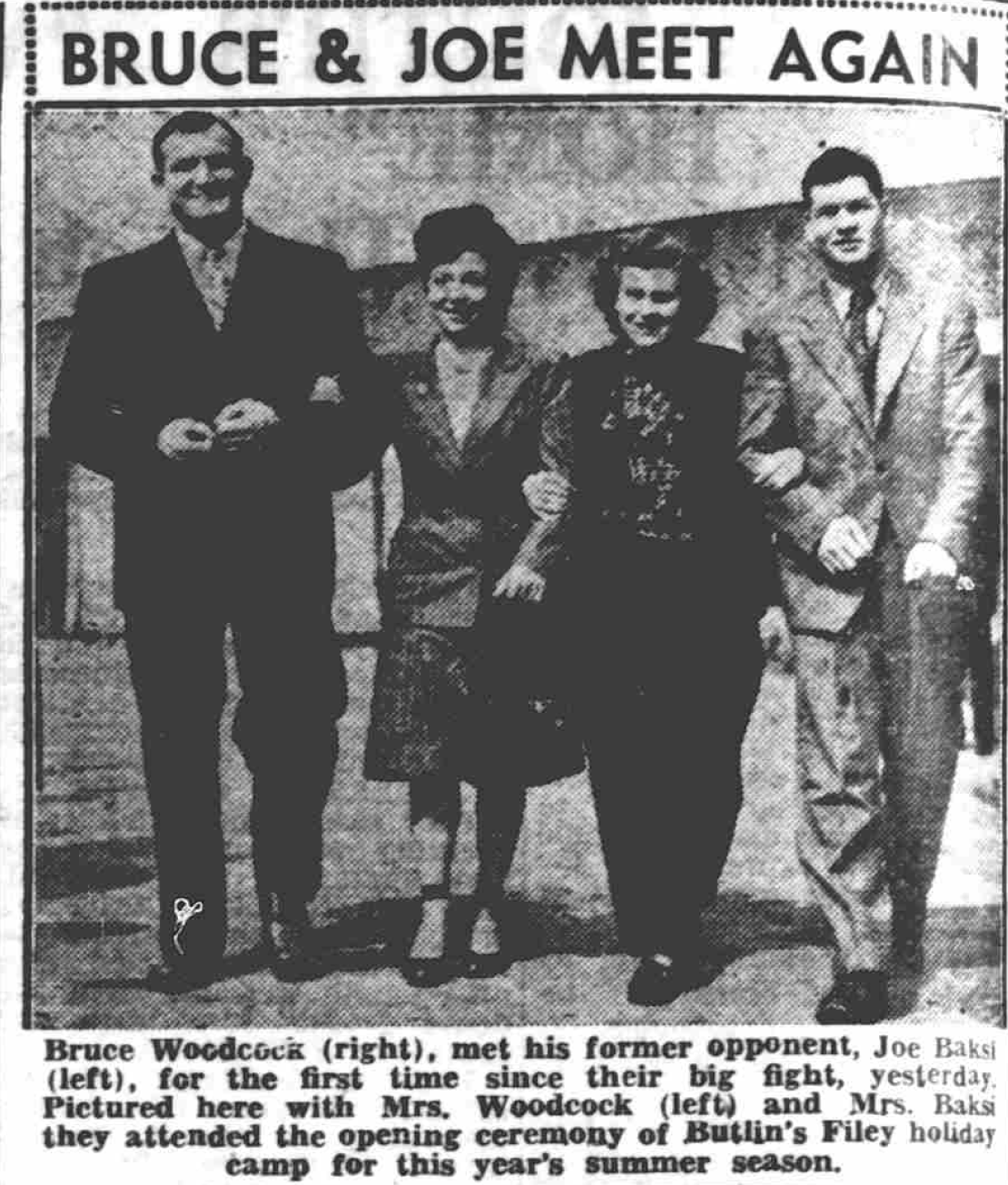 When he was discharged from hospital, Bruce and Nora went on a holiday to Butlins Holiday Cap in Filey, where Joe Baksi came to pay his respects. Baksi was touring some northern coalfields, and at Hickleton Main Colliery, he was confronted by an angry eleven year old Brian Blessed, who was distraught that the American boxer had defeated his hero. Blessed might have had some consolation from the fact that in his next fight just two months later, Baksi was beaten on points over ten rounds by the Swedish heavyweight champion, Olle Tandberg. Despite signed contracts, neither man went on to fight Joe Louis. The elusive world champion had sidestepped them all.