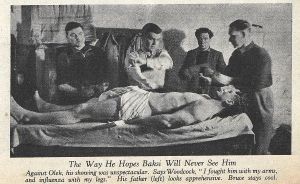 Baksi, a 25 year old former Pennsylvanian miner, had been boxing professionally for six years. He helped to fund himself with a part-time career as a circus hand. Known for his ‘iron chin’, Baksi was knocked down only once during his whole career - in this fight against Bruce. Like Bruce, he saw boxing as his way to a better life, ‘out of the coal mines’. He became a professional in 1940 aged 18, and won nine fights in that first year, one of them against future movie star Jack Palance. His breakthrough fight was in 1944 against Tami Mauriello, who he beat against the odds. He went on to win against Lee Savold in a rematch and rose to 4th in the N.B.A. rankings. But Baksi’s most ominous victory for the Woodcock camp came in 1946 when he defeated Freddie Mills at Harringay on the 5th November.