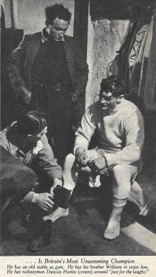 When Bruce arrived in London the previous day manager Tom Hurst and promoter Jack Solomons found they had lost the champion when his train reached King's Cross. Bruce had taken one look at the vast waiting crowd and had dived back into his carriage. Obliging railway police locked him in till he could be escorted through the crowds, who called good luck greetings to him as he left in a car with his brother Billy, Hurst and Solomons.